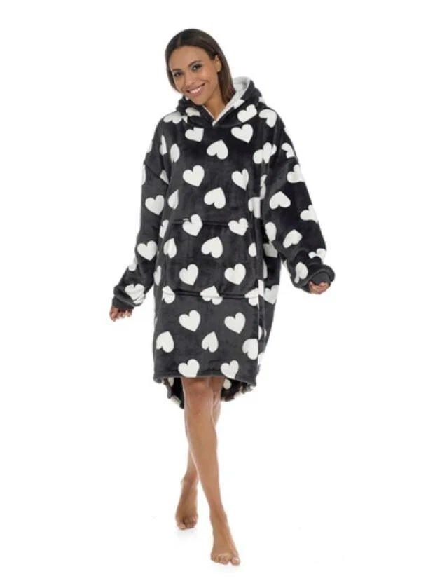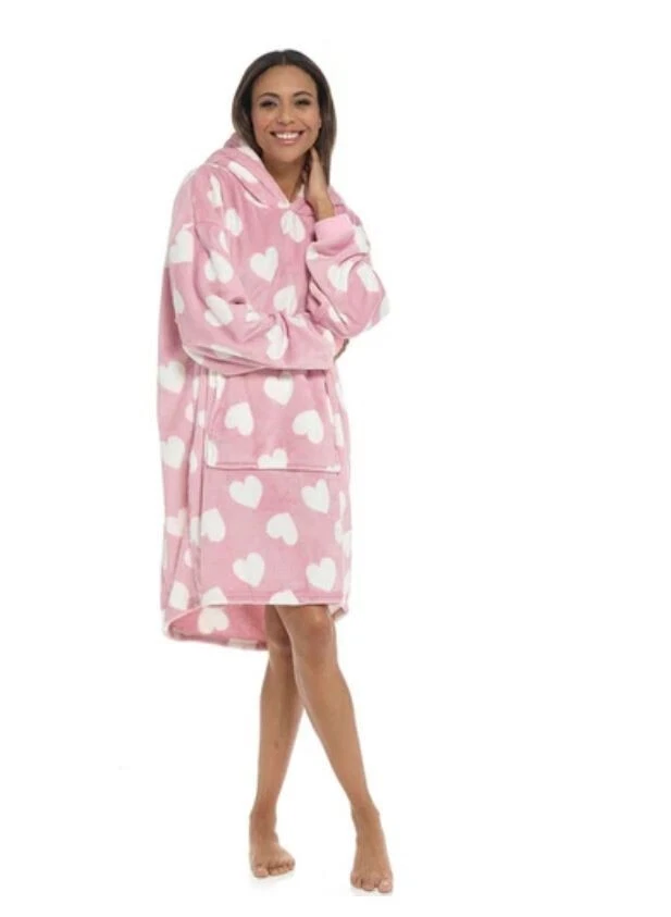 Indulge in cosy warmth with this Adult Hooded Snuggle Blanket. The super soft fleece material is perfect for chilly nights, and the heart-shaped design adds a touch of charm to your loungewear collection. The blanket features a round neckline and long sleeves with arms, making it a versatile piece for any season. This machine-washable blanket is easy to care for and breathable, ensuring that it stays fresh and comfortable wash after wash. Its smooth finish and one-size-fits-all design make it a great addition to any wardrobe. Made in China with high-quality materials, this blanket is perfect for women who love to stay comfortable while looking stylish.