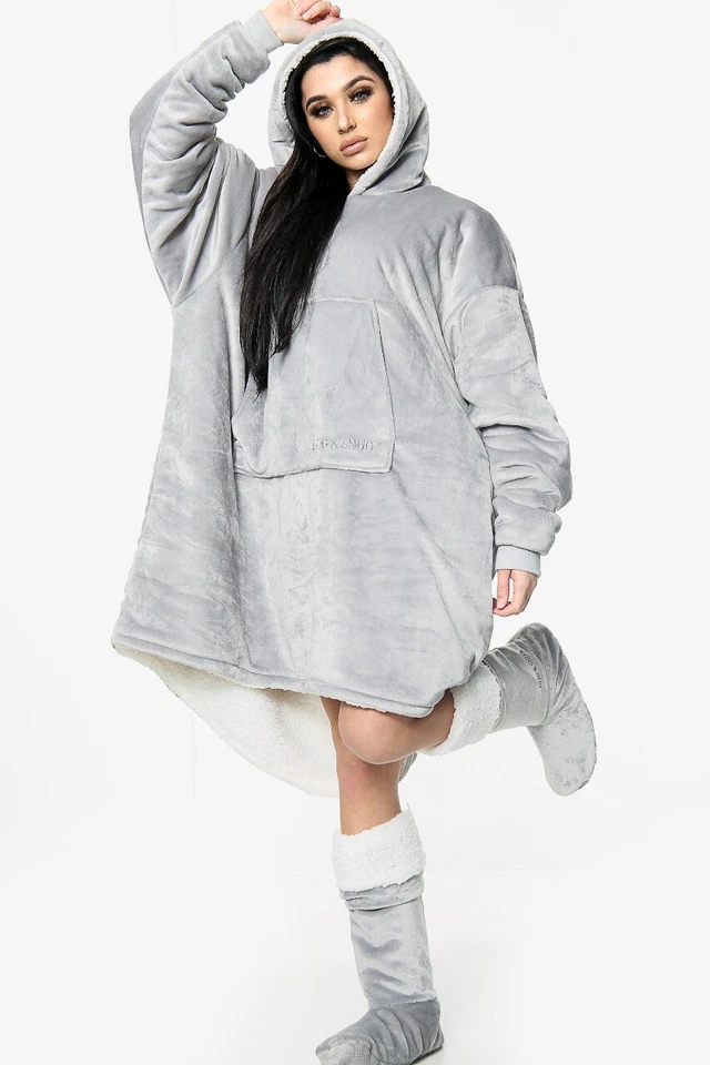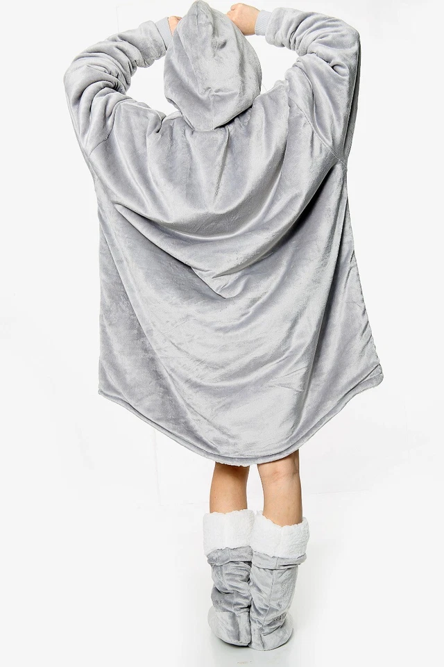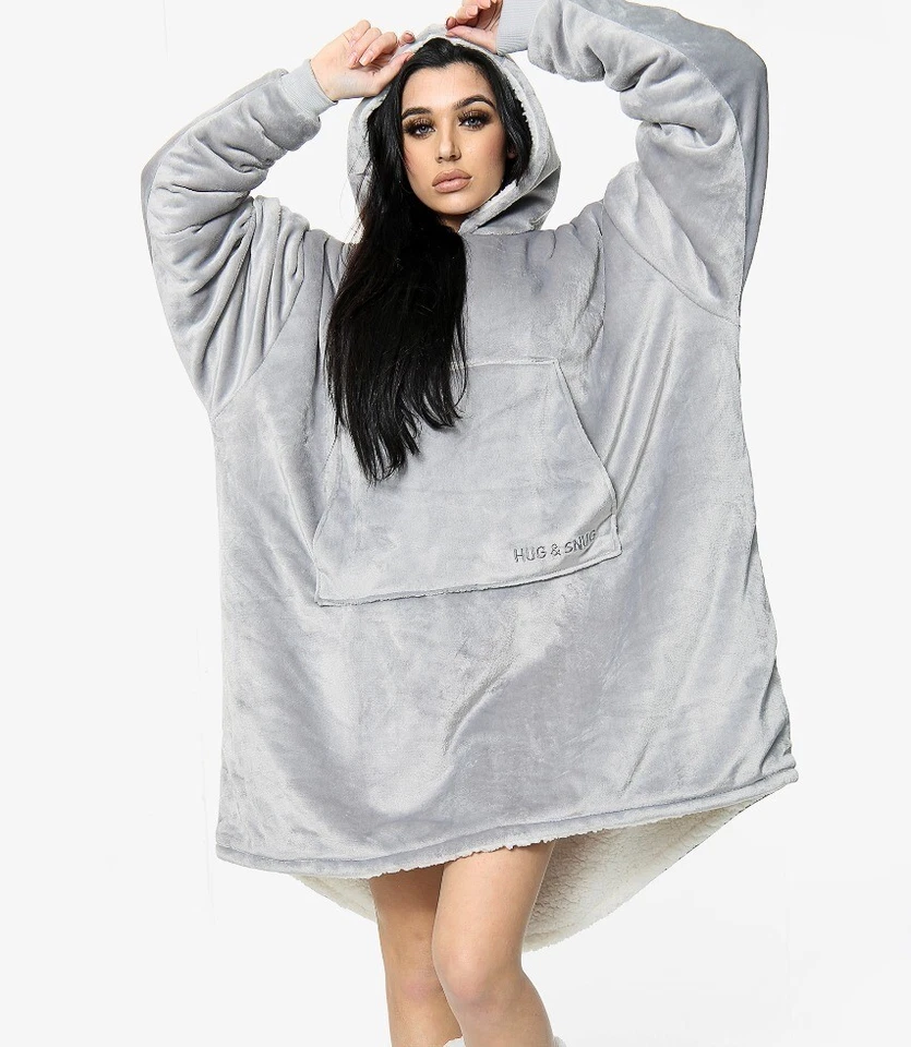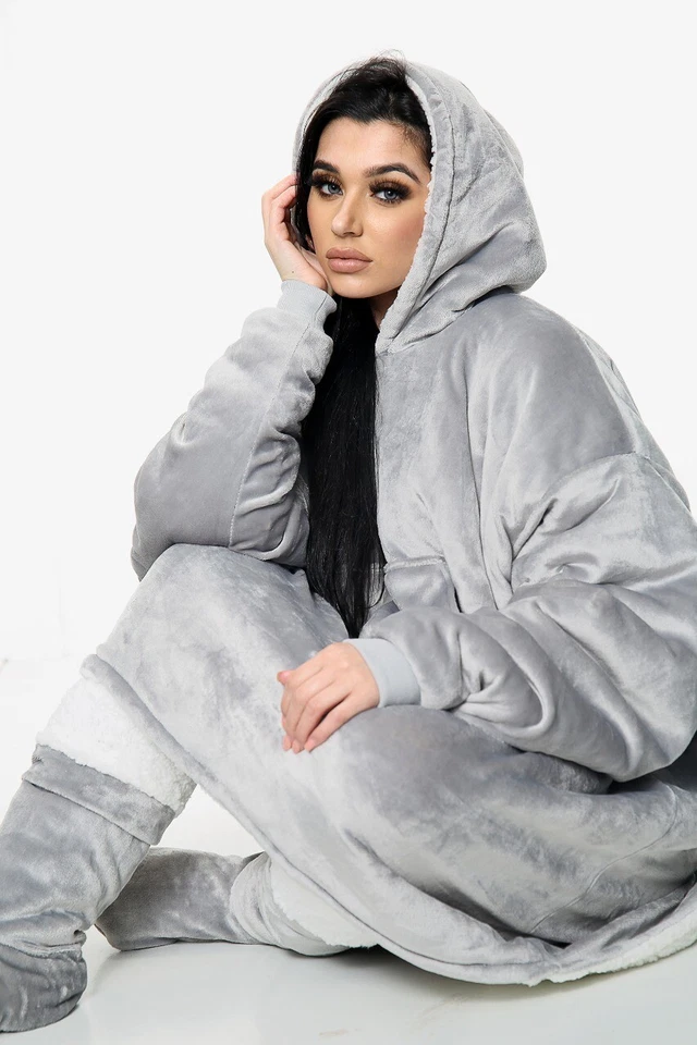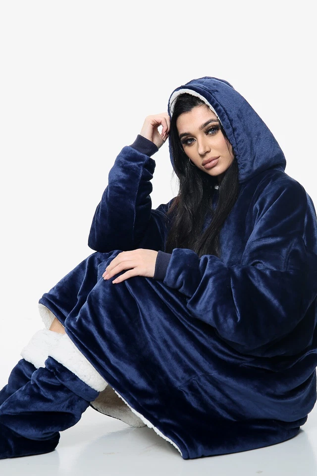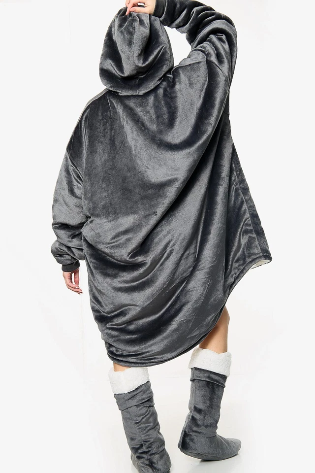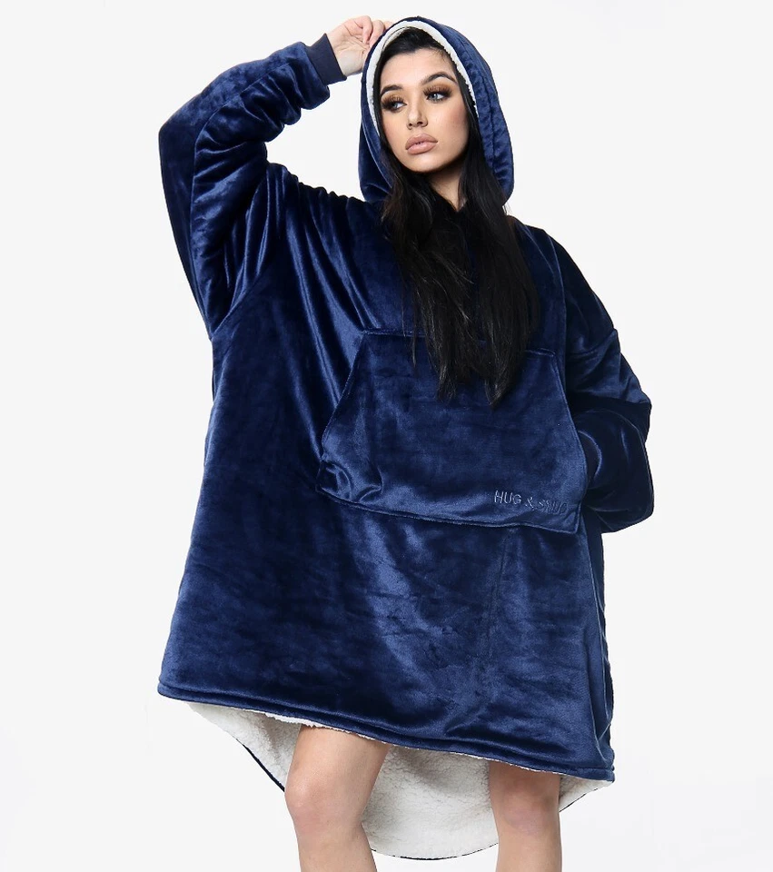The Manav Ultra Plush Sherpa Fleece Oversized Wearable Hooded Blanket is a modern and stylish addition to any woman’s wardrobe. Made of soft and cozy sherpa fleece, this rectangular blanket features sleeves and a pocket for added convenience. The oversized hoody design makes it easy to wear and perfect for lounging around the house. Machine washable for easy care, this blanket is approximately 43 inches in length, making it a versatile and comfortable option for chilly days.