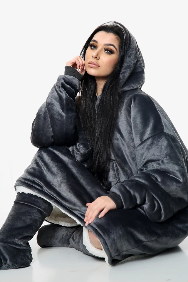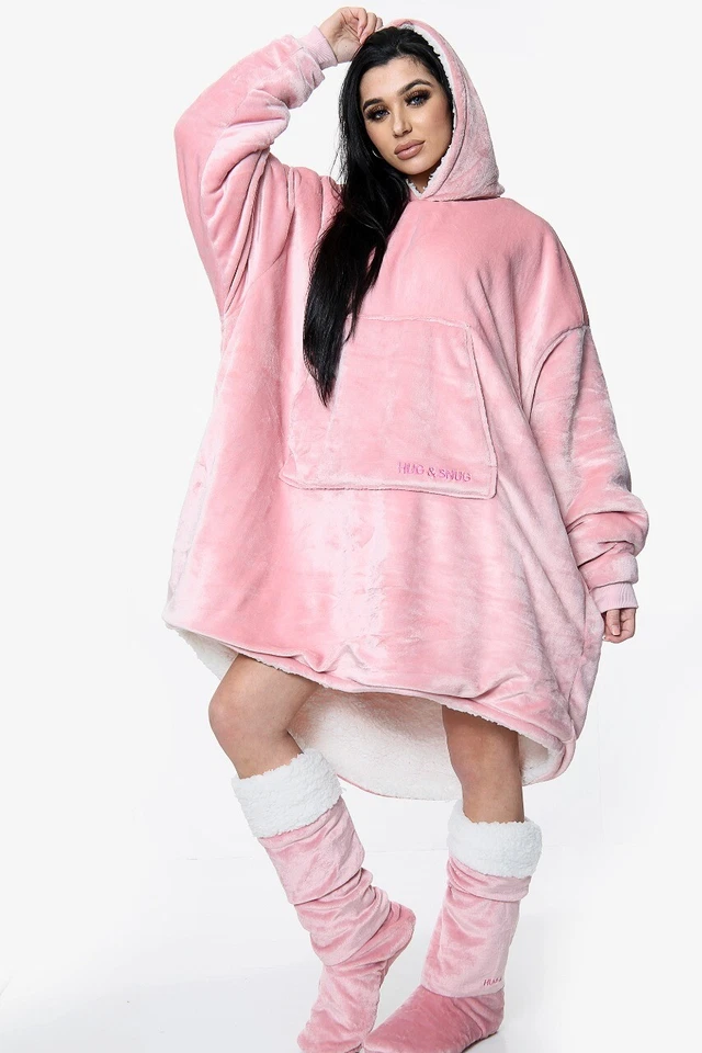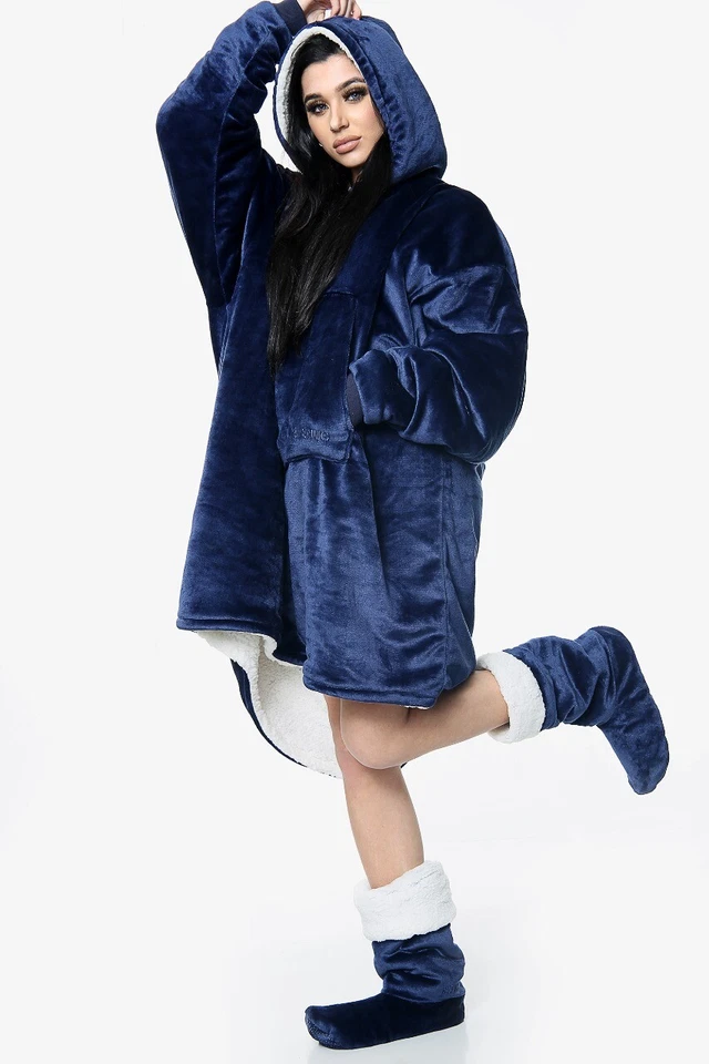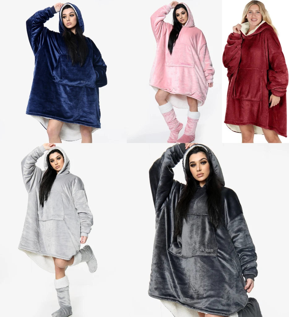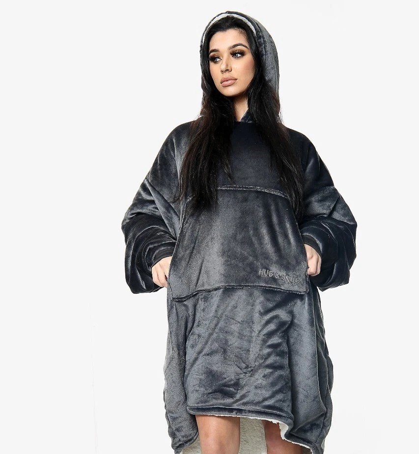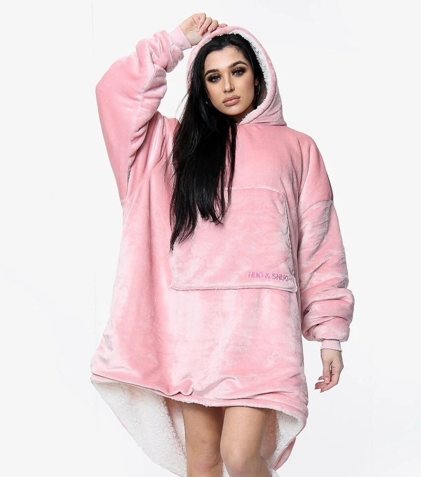 The Manav Ultra Plush Sherpa Fleece Oversized Wearable Hooded Blanket is a modern and stylish addition to any woman’s wardrobe. Made of soft and cozy sherpa fleece, this rectangular blanket features sleeves and a pocket for added convenience. The oversized hoody design makes it easy to wear and perfect for lounging around the house. Machine washable for easy care, this blanket is approximately 43 inches in length, making it a versatile and comfortable option for chilly days.
