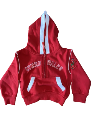 This hoodie is perfect for young boys who love stylish and comfortable clothing. The hoodie is made of a polyester blend, making it machine washable and easy to care for. It features a 1/2 zip closure and is designed with the Welsh Dragon embroidered in red, giving it a unique and patriotic look. The hoodie comes in red and is suitable for boys aged 2-16 years. The style is perfect for casual wear and can be paired with different outfits. The hoodie is from the brand Manav and is part of the Boys’ Clothing category. Get your little one this stylish hoodie today and let them show off their Welsh pride!