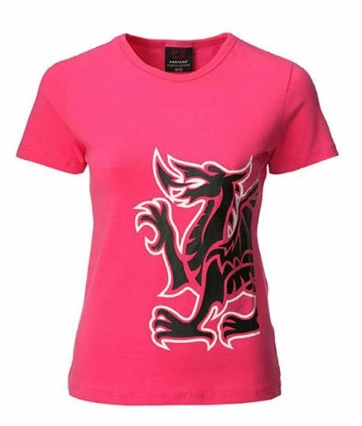 Show your Welsh pride with this stunning ladies’ T-shirt featuring the Welsh Dragon and National Anthem. The T-shirt is made of 100% cotton, making it soft and comfortable to wear. It has a crew neckline and short sleeves, with a slim fit design that’s perfect for a stylish and modern look. The T-shirt is machine washable for easy care, and the red, black and pink colours make it a vibrant addition to any wardrobe. The Welsh Dragon logo is a great accent and the jersey fabric type gives it a casual feel. This T-shirt is perfect for any occasion, whether you’re cheering on your favorite Welsh sports team or just showing off your Welsh pride.
