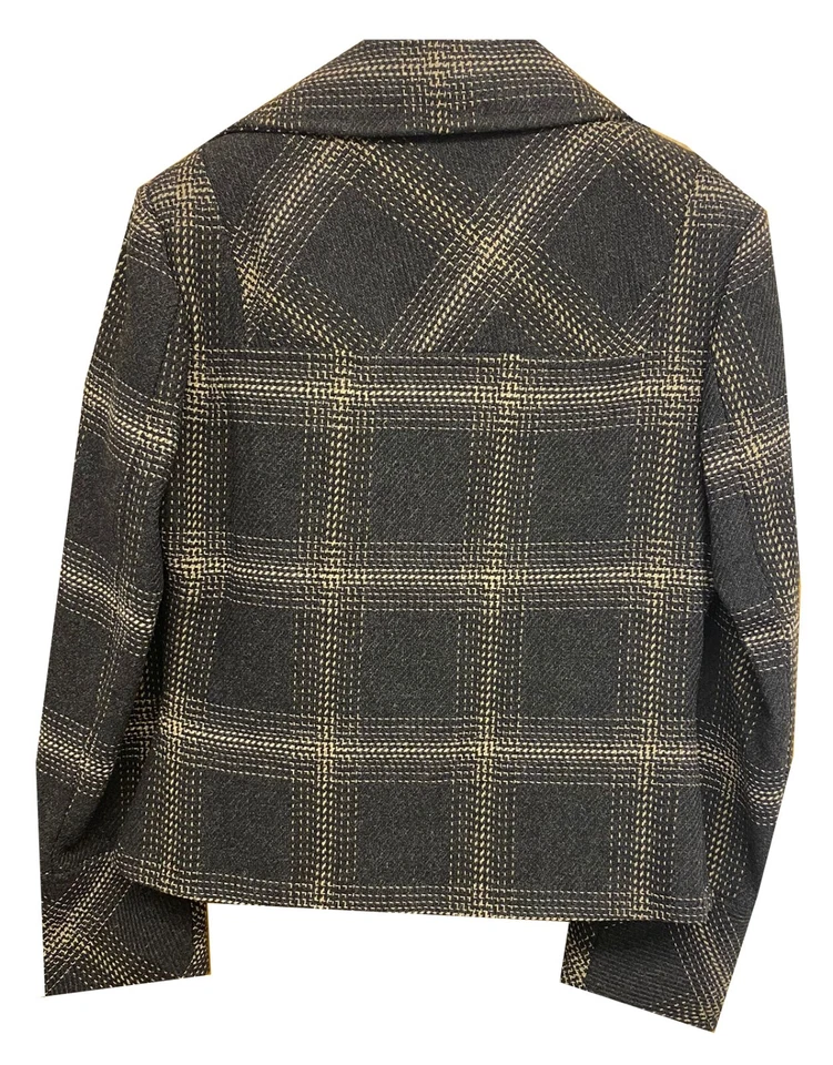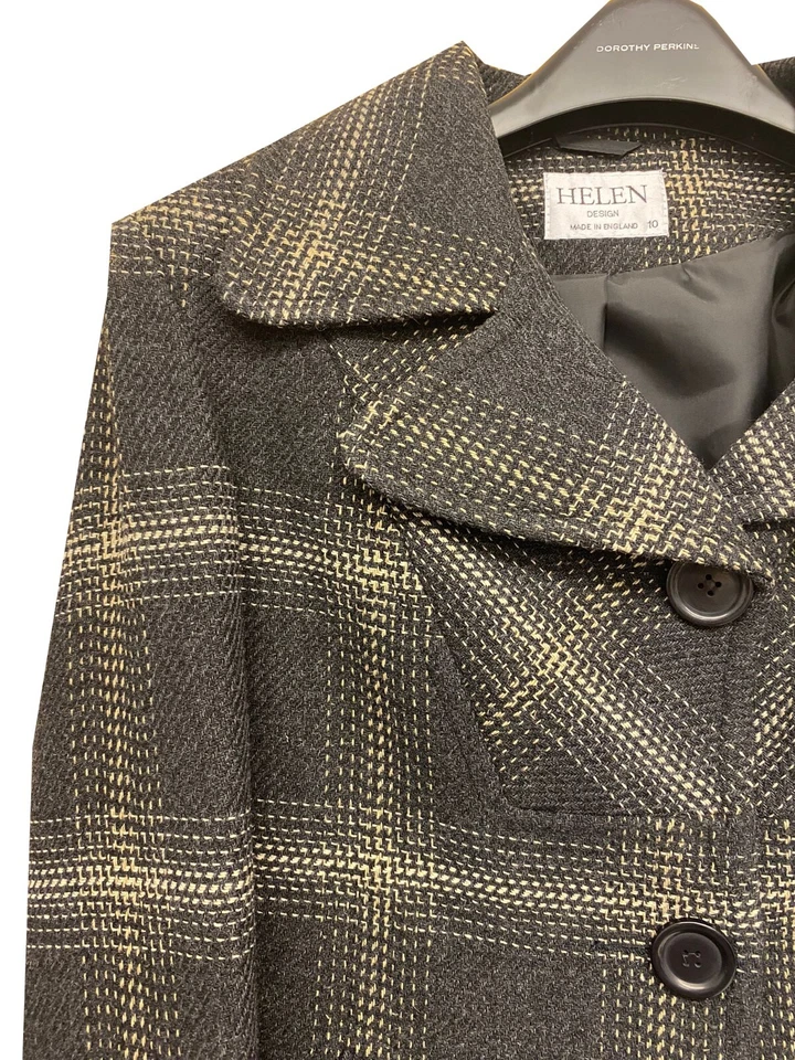 Elevate your style with this brand new women’s blazer jacket coat. The jacket boasts a designer check pattern and is made of a mixed fibre and wool blend, ensuring comfort and warmth during autumn and winter. The jacket features a button closure and accented collars, making it perfect for casual, formal, and business occasions. Crafted by Helen, this basic jacket is lined with polyester, adding to its durability, while the wool insulation material provides extra warmth. The jacket is available in a regular fit and size type, making it an ideal choice for women. This United Kingdom-made blazer is perfect for all seasons, whether you’re looking to add a touch of sophistication to your wardrobe or to keep yourself warm during chilly days.
