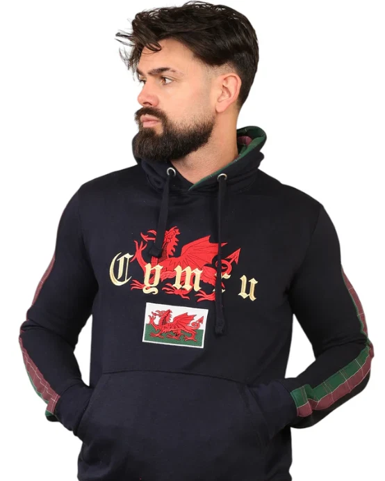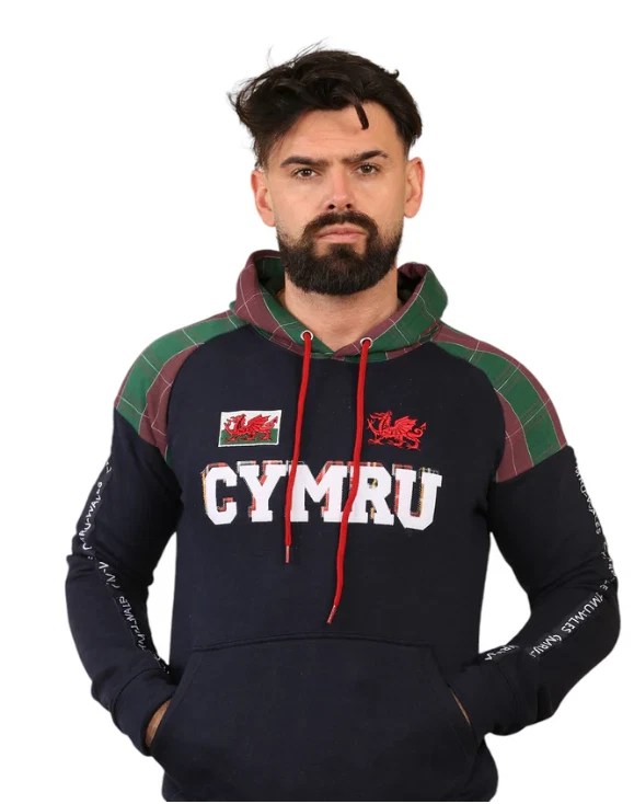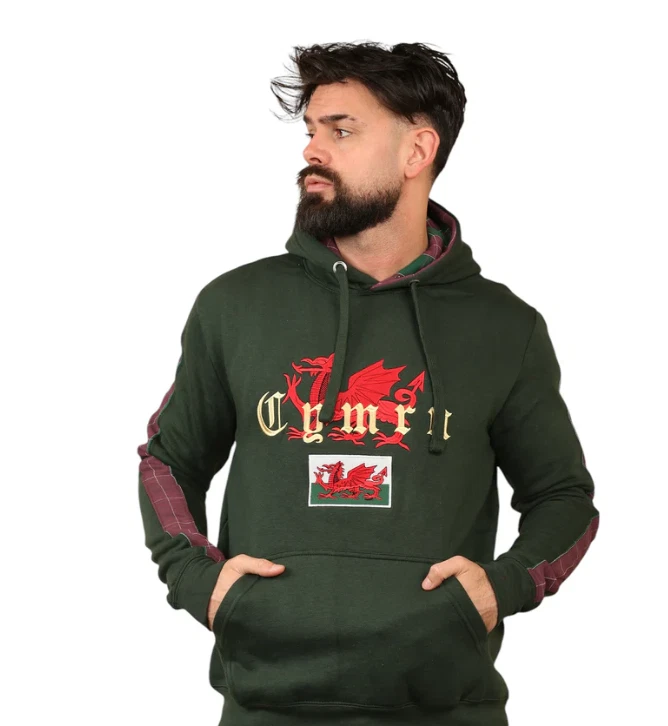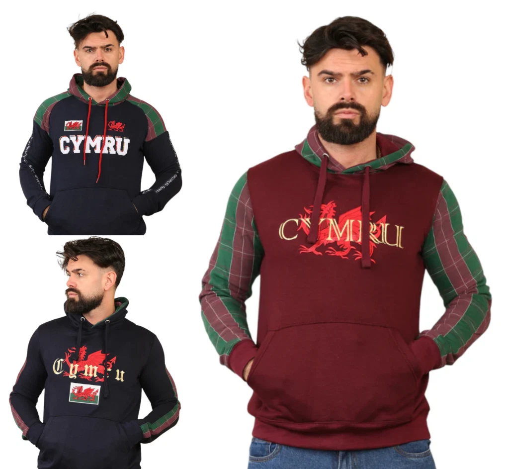 New Men’s Wales Cymru Flag Dragon St David’s Day Gold Tartan Welsh Hoodies