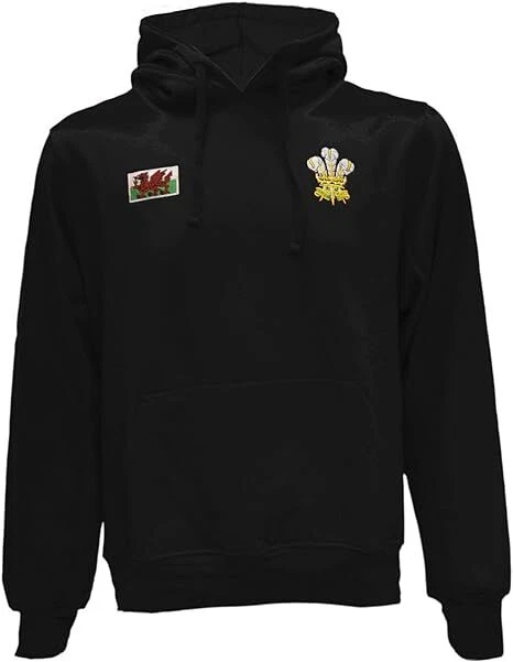 New Men’s Wales Cymru Welsh Flag & Feathers ‘Shak’ Hoodie Hooded Top